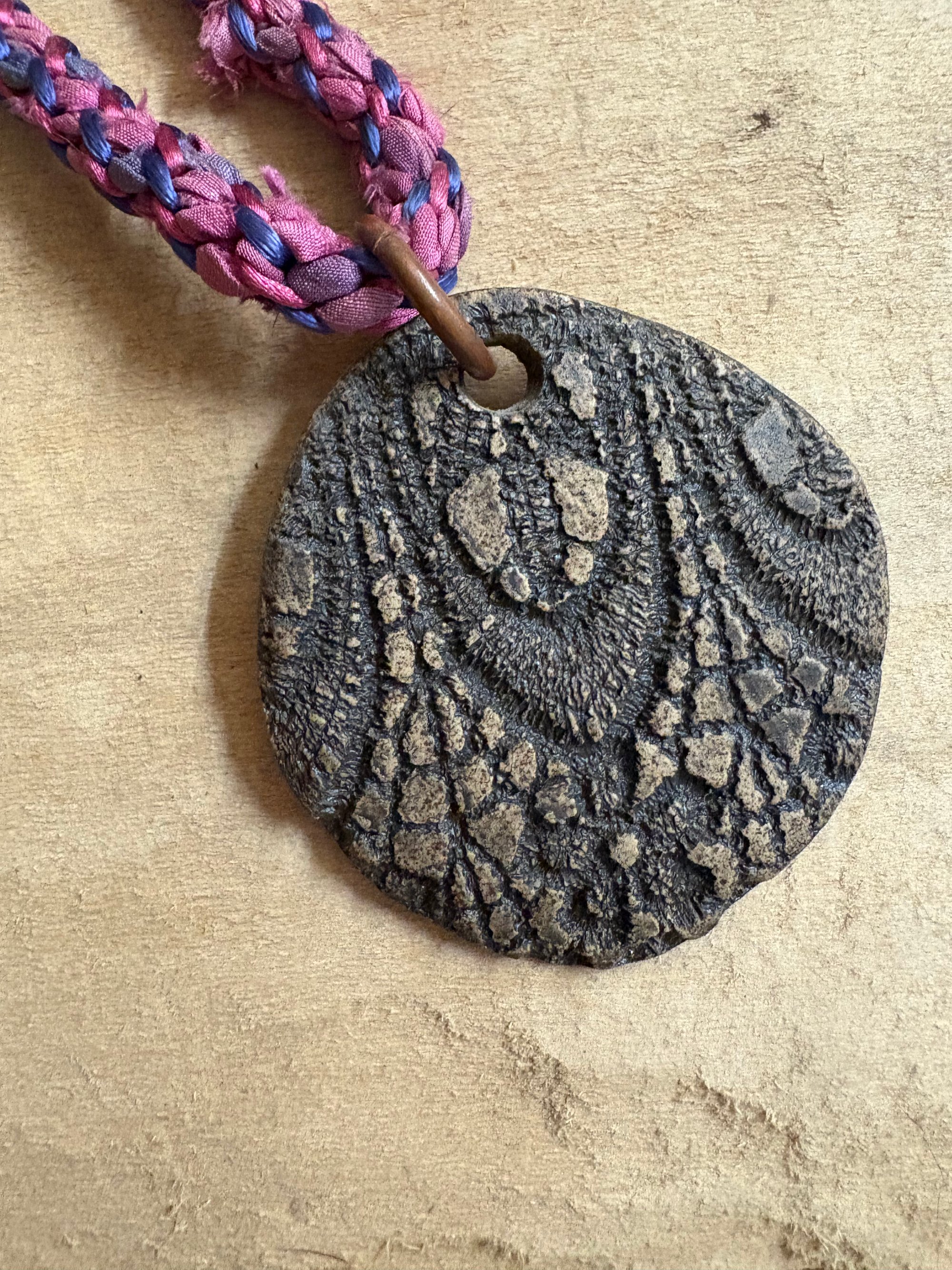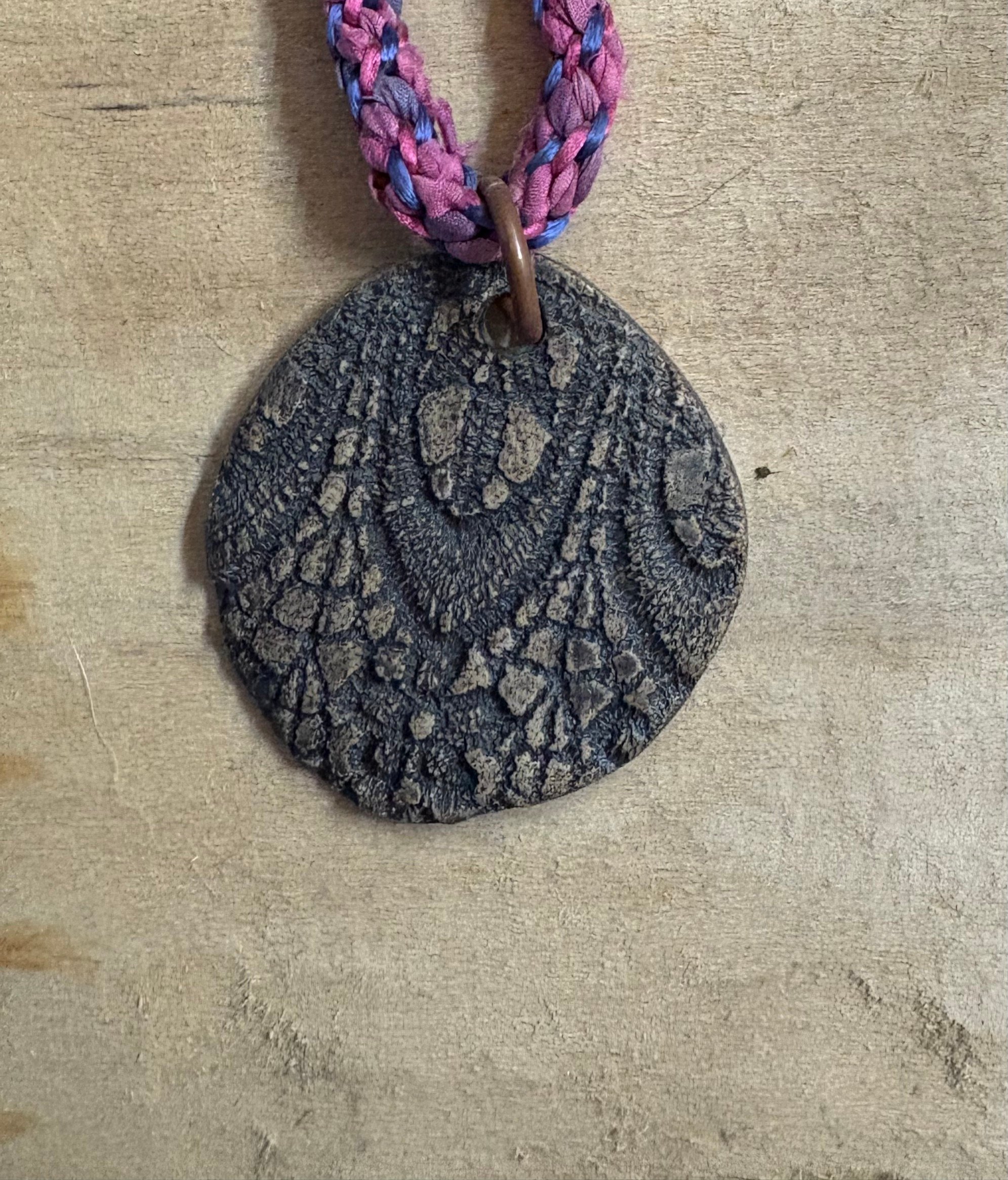 Floral Ceramic Pendant with Kumihimo Woven Necklace 25 inches