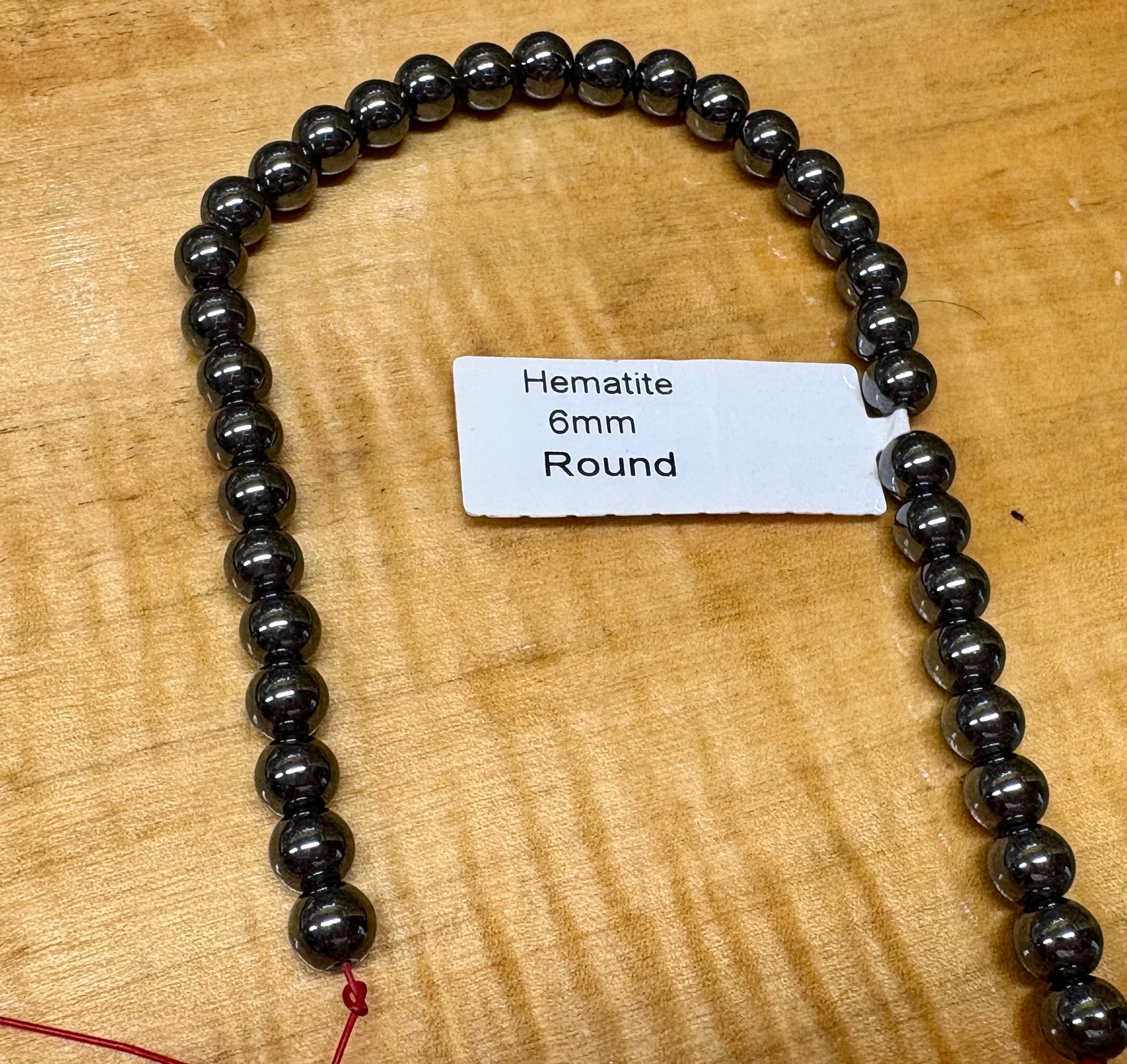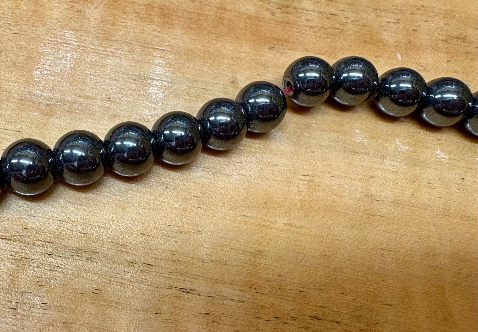 Hematite 6mm Round Gemstone beads 8 inch strand Approx. 35 beads
